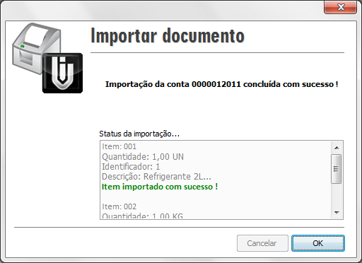 Em seguida é realizado o processo de importação, conforme tela a seguir: