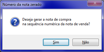 Ao efetuar este procedimento, será apresentada a seguinte mensagem: Deseja gerar a nota de compra na sequência númerica da nota de venda?