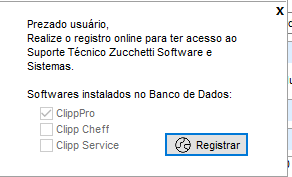 Caso a empresa possuir o Clipp Service ou Clipp Cheff instalado no computador será apresentada a opção para registrar o mesmo, mantenha marcada a opção correspondente ao Módulo Complementar utilizado e clique em Registrar.