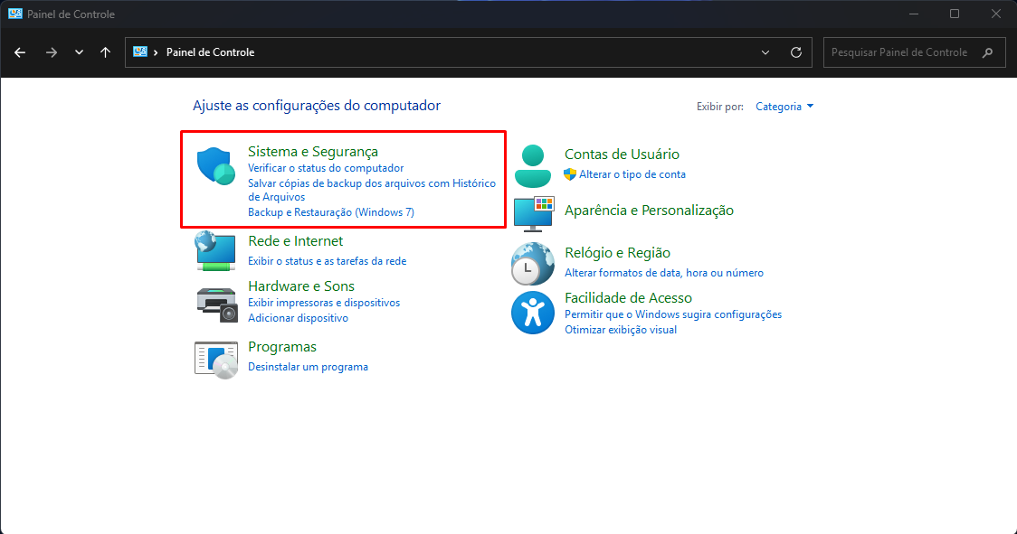 - Vá até Sistema e Segurança;