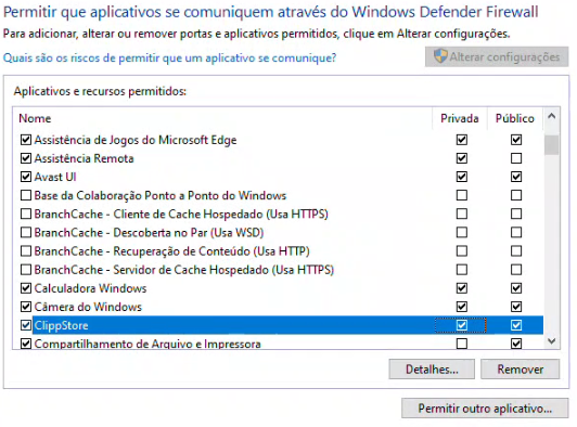 (É recomendado manter o firewall desativado para uso do ClippPro)