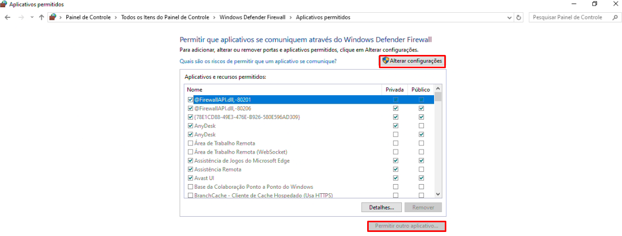Habilitando permissões no Firewall do Windows