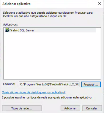- Localize o fbserver.exe na pasta padrão do firebird: C:\Program Files (x86)\Firebird\Firebird_2_5\bin