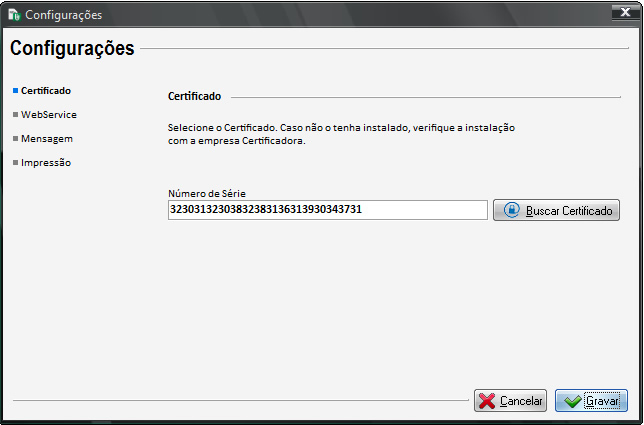 Após selecionar o certificado, clique em Gravar, o sistema será fechado. Pronto, a configuração está pronta.