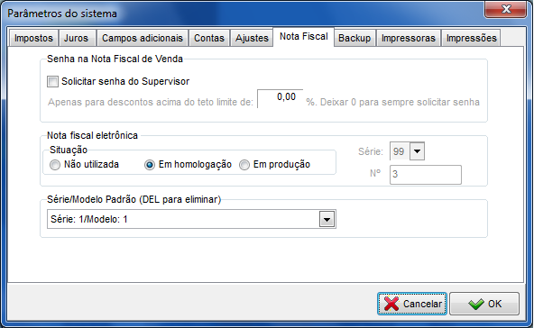 Obs: Ao alterar a situação para produção, as notas fiscais emitidas em homologação serão canceladas, inclusive suas movimentações financeiras.