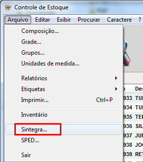 Para efetuar a geração do arquivo, basta acessar o módulo de Estoque, clicar no menu Arquivo / Sintegra, conforme podemos observar na próxima tela: