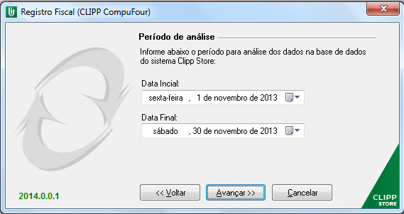 Após, é necessário selecionar o período desejado. O período a ser gerado deve seguir a orientação do contador, é sempre mensal, e deve iniciar com o primeiro dia do mês solicitado, e finalizar com o ultimo dia do respectivo mês. Geralmente é gerado utilizando o período referente do mês anterior ao movimento atual.
