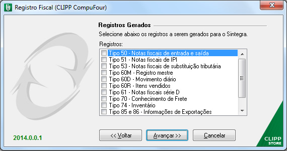 Abaixo, segue informações sobre os registros geradas através do sistema de Registro Fiscal – Clipp.
