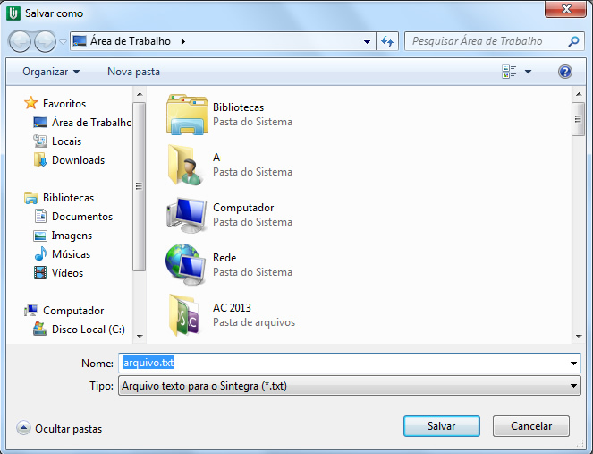 Após efetuar a geração do arquivo será necessário salvar o mesmo para posteriormente efetuar a validação no Validador fornecido através do site www.sintegra.gov.br