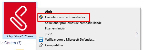 A instalação do ClippPro é diferenciada das demais versões, para executar o instalador, após baixa-lo, clique com o botão direito do mouse sobre ele e vá até a opção executar como administrador.