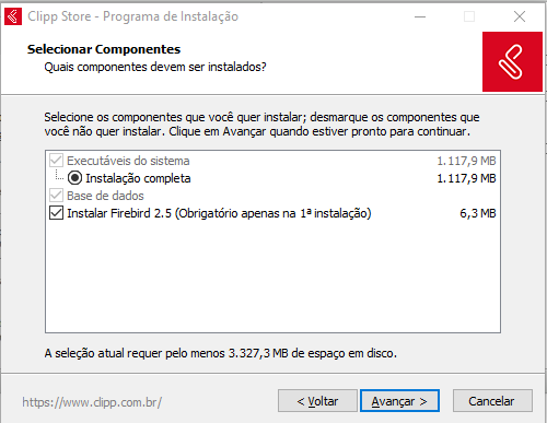 Caso for a primeira vez que estará instalando o sistema marque também a opção Instalar Firebird 2.5. Feito isso clique em Avançar.