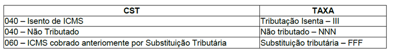 Segue abaixo uma tabela com alguns exemplos de CSTs utilizados: