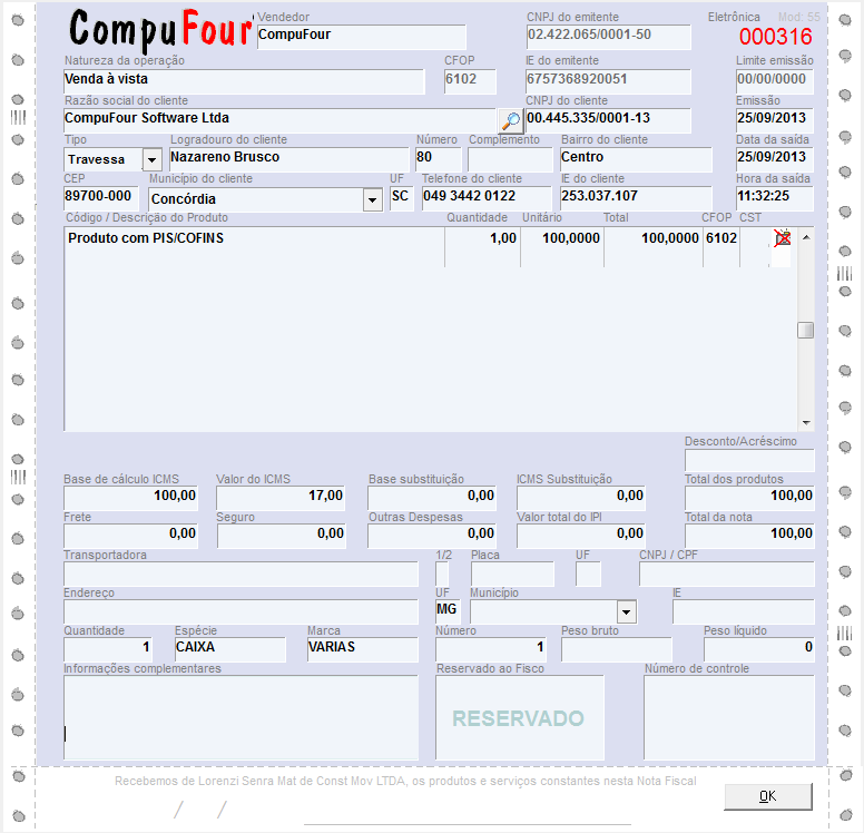 Em seguida, lance o produto em questão na nota fiscal de venda e finalize-a.