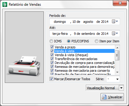 Para gerar o relatório das vendas efetuadas no módulo de nota fiscal contendo produtos com PIS/COFINS deverá seguir os seguintes procedimentos: