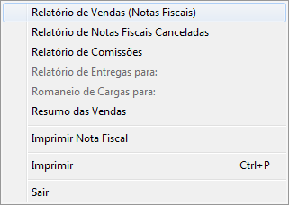 Após finalizar a nota, ainda no módulo de Nota Fiscal de Venda, clique no menu Arquivo / Relatório de Vendas (Notas Fiscais).