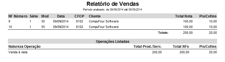 Assim, o relatório será apresentado conforme modelo abaixo, contendo os produtos com PIS COFINS que foram vendidos na nota fiscal. Neste relatório irá constar o valor de PIS/COFINS de cada nota.