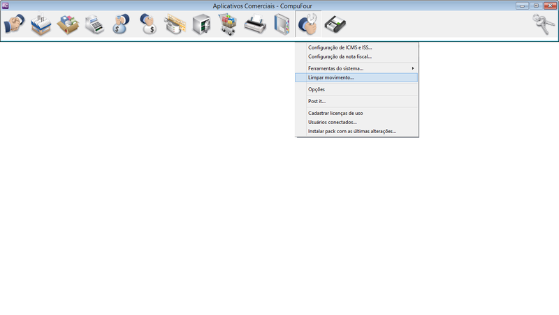 Abra o programa Aplicativos Comerciais, vá até o módulo Configurações e Ajustes e clique na opção Limpar movimento, conforme imagem abaixo.