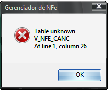 Segue em anexo a base da dados para verificação, a mesma apresenta a mensagem "Table Unknow", ao clicar sobre o Menu Opções - Eventos da Nota Fiscal Eletrônica.