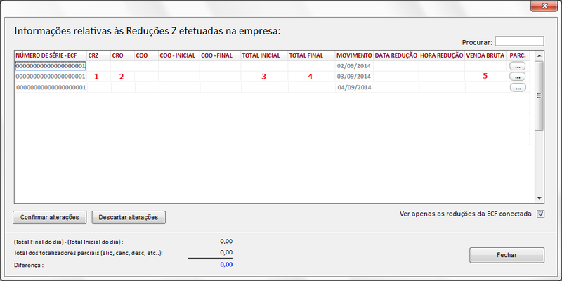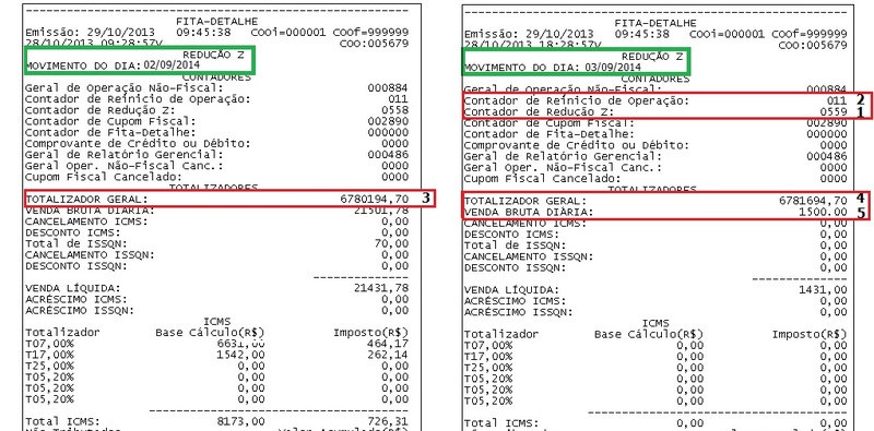Caso ocorra a divergência no GT, serão analisados os dados da última redução Z emitida pela Impressora Fiscal, nesse caso os campos a serem verificados para a reconstituição dos valores são: