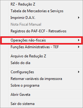 É importante lembrar que se no dia não existirem vendas, deve ser emitido um suprimento¹ e uma sangria² para que a Redução Z possa ser emitida. Para emitir tanto suprimento como sangria acesse o emissor de cupom fiscal, pressione F10 / Operações não-fiscais.