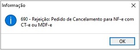 Rejeição 690: Pedido de Cancelamento para NF-e com CT-e ou MDF-e