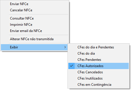 Clique com botão direito na área das notas Exibir > CFes Autorizados.