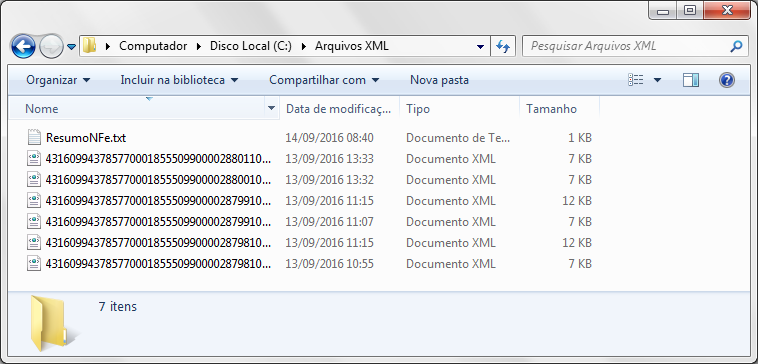 ATENÇÃO: Sugerimos criar uma pasta em seu computador na qual os arquivos XML serão colados, o Gerenciador de NFe não cria a pasta automaticamente, esse processo deverá ser executado manualmente.