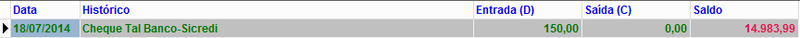 Quando um cheque é depositado no módulo de Cheques Pré-Datados: O valor entra no banco e sai do Livro Caixa, gerado um crédito.