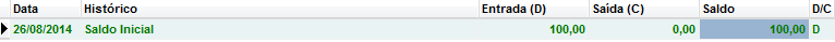 Caso o saldo incial de sua empresa seja positivo, marque a opção Entrada (D). Caso seja negativo, marque a opção Saída (C).
