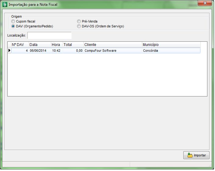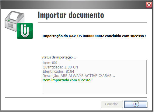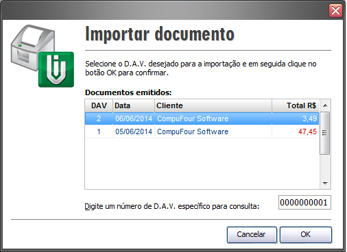 Selecione o DAV à ser importado, confirme e aguarde a importação dos itens.