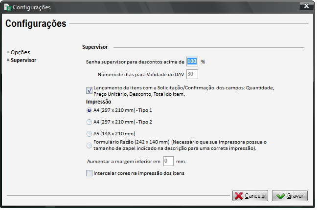 - Que o sistema solicite a senha do Supervisor sempre que for concedido um determinado desconto;