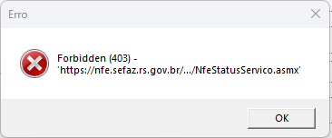 Ao tentar emitir uma NF-e ou NFC-e a seguinte mensagem é apresentada: