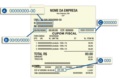 Inscrição Estadual (IE) > Data de Emissão > COO > ECF.