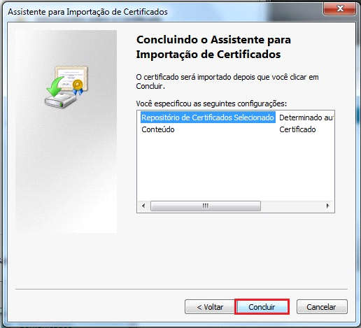 5. Clique em "Avançar" mais uma vez e finalmente, clique em "Concluir";