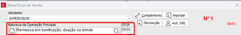 Após cadastrada a Natureza de Operação, acesse o módulo de Nota Fiscal de Venda/Nota Fiscal Eletrônica, clique no botão Novo e selecione a Natureza de Operação referente a operação desejada.
