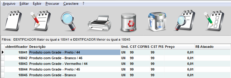 Acessando essa guia será possível cadastrar as quantidades dos produtos e suas respectivas grades.