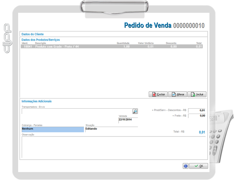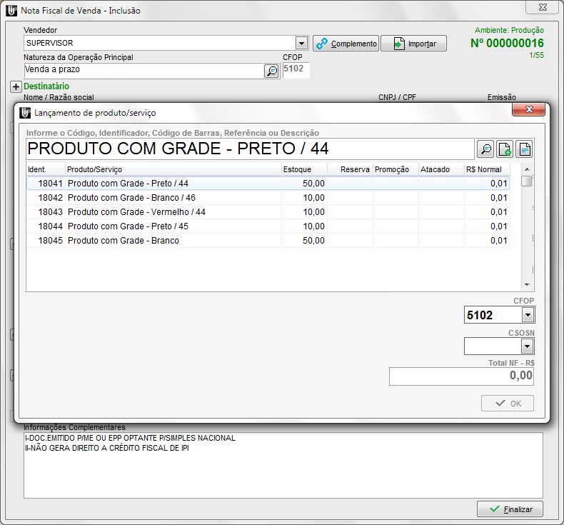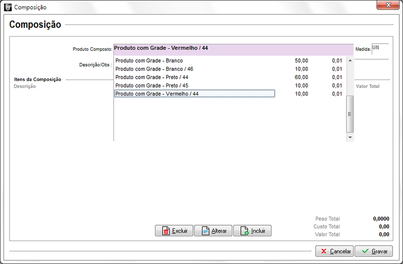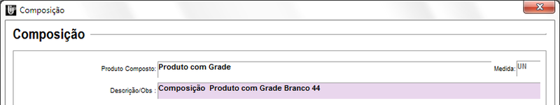 Ao selecionar o produto Composto e os itens da Composição, a Grade não será apresentada, sugerimos informá-la na Descrição/Obs.
