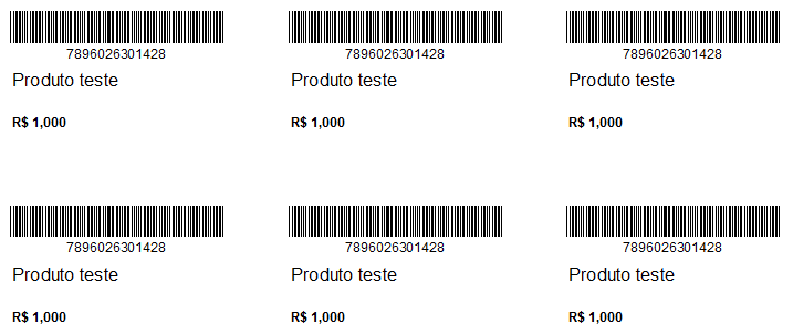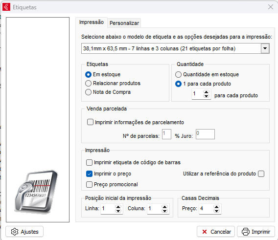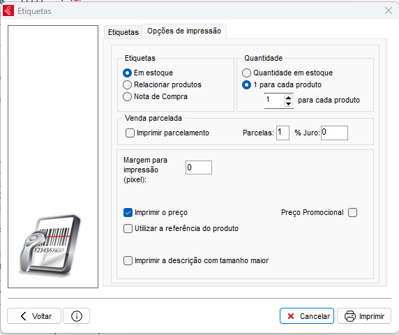 • Quantidade em estoque: irá imprimir etiquetas para cada quantidade em estoque;