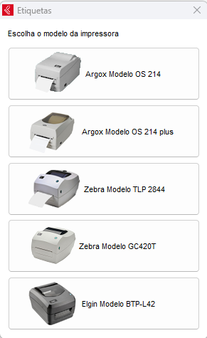 Após selecionar a impressora serão apresentados os modelos disponíveis para cada uma delas.
