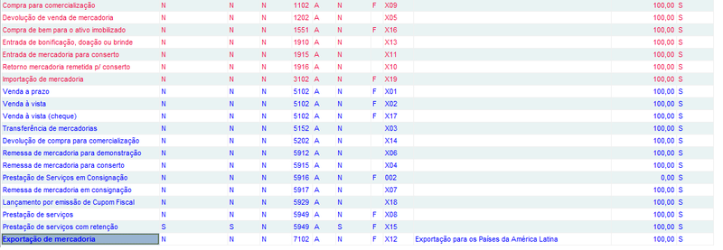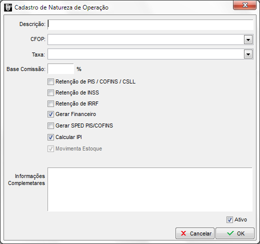 Após possuir o cadastro da Taxa poderá efetuar o cadastro da Natureza de Operação (CFOP).