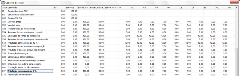 Obs: Dentro da ficha do item no estoque existe o campo Taxa ICMS/ISS: Este campo armazena a Taxa do produto cuja finalidade é definir o tipo de tributação do item. Possuindo esse campo preenchido no produto, a Taxa ICMS configurada na Natureza de Operação não será considerada.