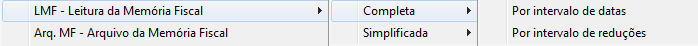 A leitura Memória Fiscal Completa traz as informações registradas na memória da Impressora Fiscal. Pode ser gerada por intervalo de datas ou por intervalo de reduções. Em cada uma das opções, Completa ou Simplificado, poderá indicar: Por intervalo de datas ou reduções.