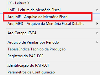 O Arq. MF – Arquivo Memória Fiscal gera informações fiscais para uso do PAF.