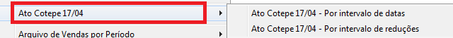Arquivo de Vendas por período - Possui duas opções, o relatório conforme Convênio ICMS 57/95 onde irá gerar o arquivo Sintegra e também conforme o Ato Cotepe/ICMS 09/08 onde irá gerar o arquivo do Sped Fiscal.