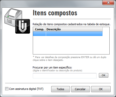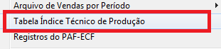 Tabela de índice técnico de produção - Nesse relatório é apresentada a relação de itens compostos na tabela de produtos no estoque.