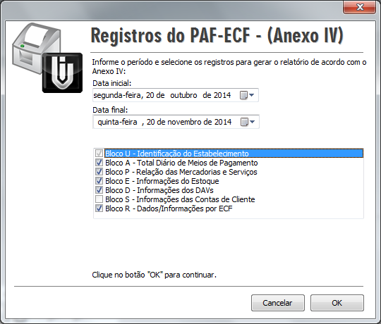 Registro utilizado para gerar arquivos da Redução Z para o estado do Espírito Santo com data retroativa. Basta selecionar o período que o sistema irá gerar na pasta PAF todos os arquivos TXT do período que foi selecionado.