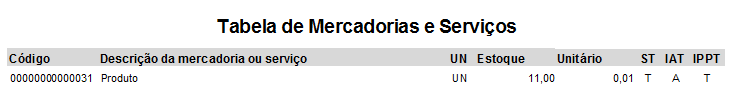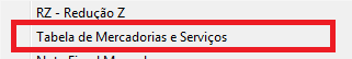 Supervisão (F10) - Tabela de mercadorias e serviços