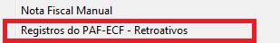 Supervisão (F10) - Registros do PAF-ECF – Retroativos