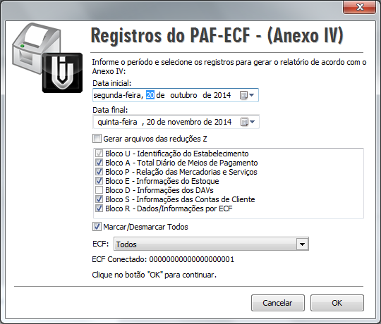 Identificação do PAF-ECF - Será gerado um relatório gerencial com os dados da empresa desenvolvedora, bem como o sistema utilizado, arquivo MD5, lista dos arquivos autenticados e os dados da impressora.