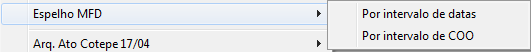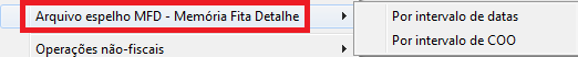 O Espelho MFD – é um espelho da memória da impressora fiscal, o mesmo pode ser gerado por intervalo de datas ou por intervalo de COO (Número do documento fiscal). Esse arquivo gera um espelho exato da movimentação da Impressora Fiscal obedecendo a data ou intervalo dos COOs selecionados, no formato txt.